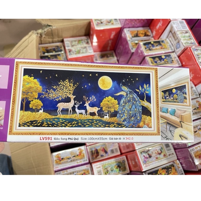 Tranh Đính Đá-Tranh Thêu Hươu Tài Lộc - Giàu Sang Phú Quý Lv591,Lv592,Lv593,Lv3549,Lv3550,Lv3551,EDB57