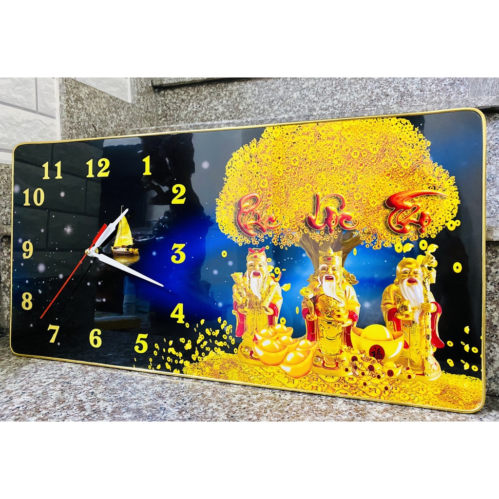 Tranh đồng hồ treo tường tráng gương Phúc Lộc Thọ