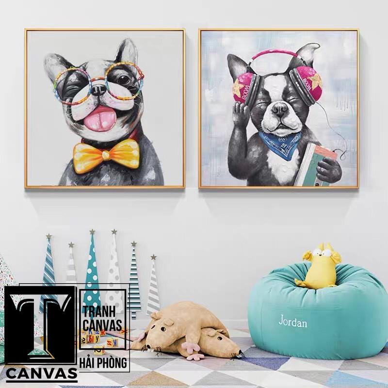 Tranh canvas treo tường hiện đại nghệ thuật, chân dung Chó, Mèo ngộ nghĩnh CM31-32