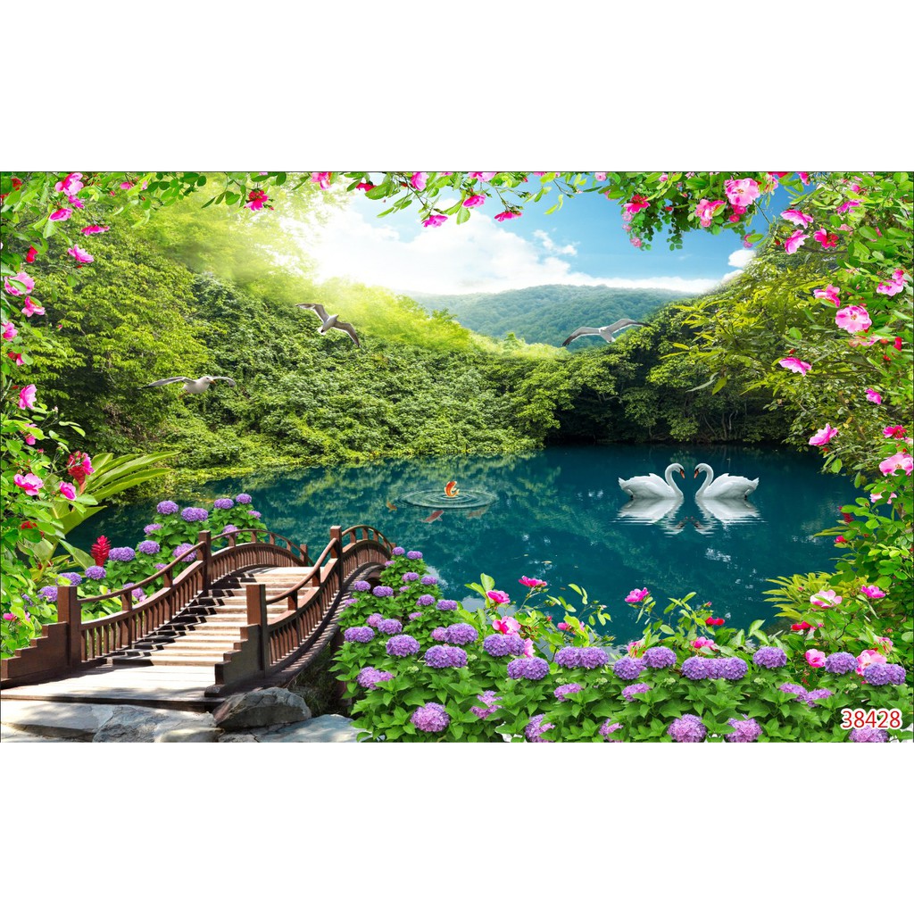 Tranh dán tường 3d phong cảnh thiên nhiên trang trí phòng khách chất liệu decal pp keo sẵn bóc dán atk18