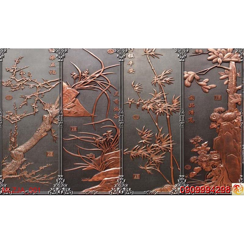 TRANH DÁN TƯỜNG 3D TỨ QUÝ -TRANH DÁN TỨ QUÝ TÙNG,TRÚC,CÚC,MAI
