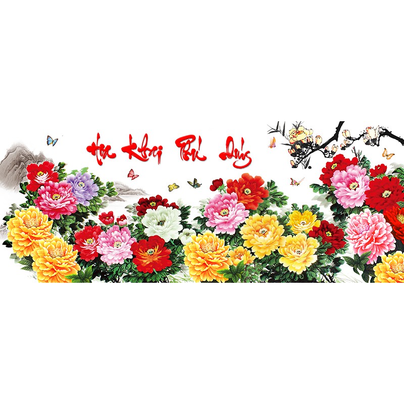 Tranh dán tường HD Hoa mẫu đơn Phú Quý HUD0123 phủ kim sa
