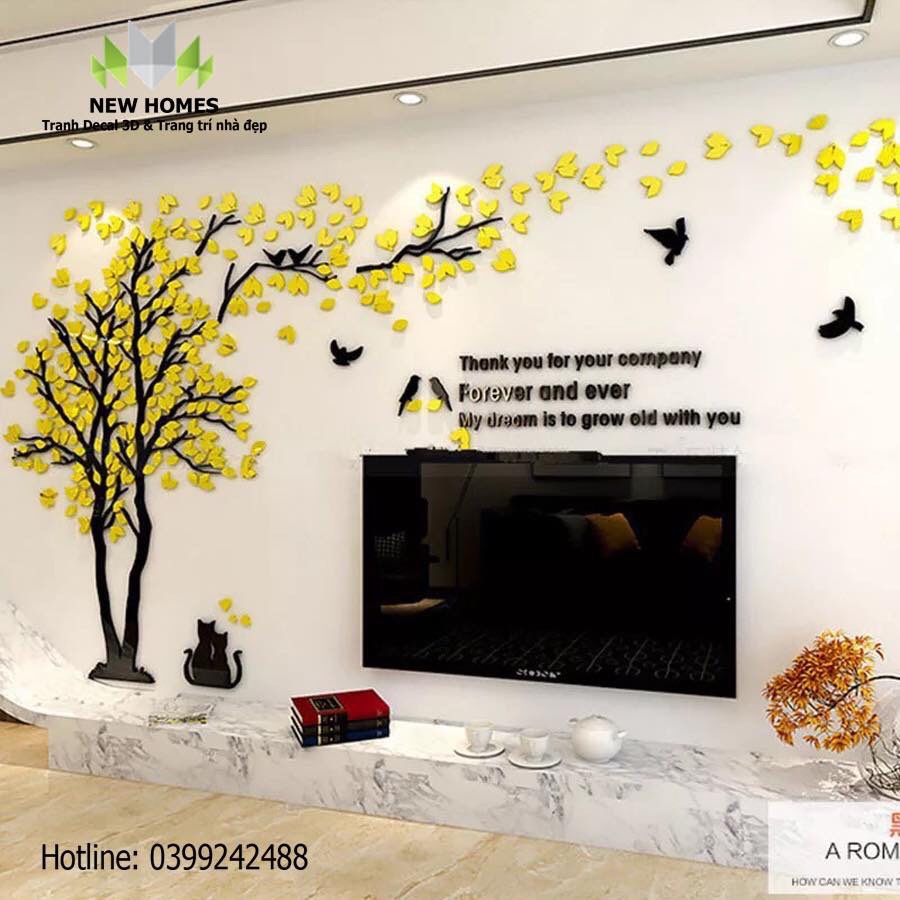 Tranh dán tường mica 3D-Cây tình nhân,trang trí phòng khách,nhà hàng,spa,quán cafe