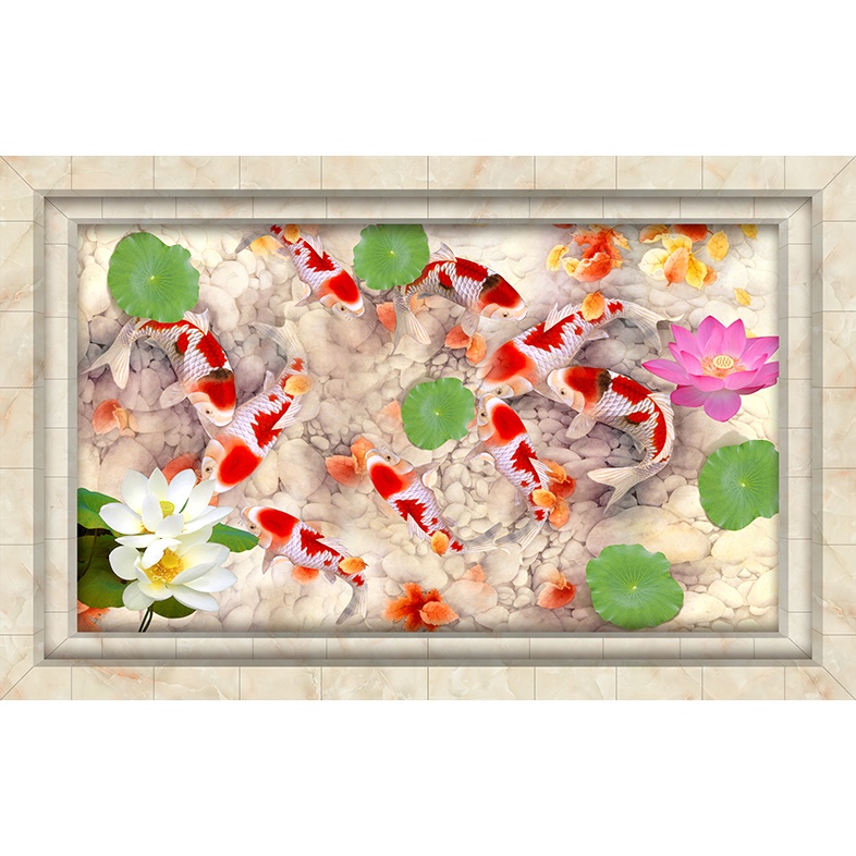 Tranh dán tường VTC cá chép koi và hoa sen UD0270K nhiều mẫu in PP kim sa đẹp mắt