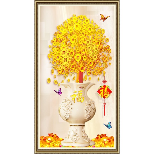 Tranh dán tường VTC Khổ dọc Bình hoa tài lộc LV-0113K Kim sa nhiều mẫu