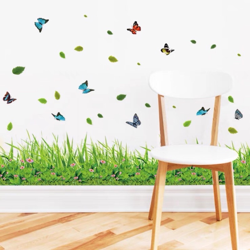 Tranh Decal dán tường chân cỏ xanh, sẵn keo dán.