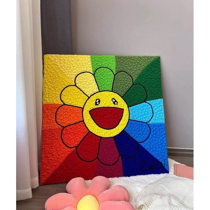 Tranh hoa Kaikaikiki mặt cười nhiều màu tự gắn đá hạt bombom