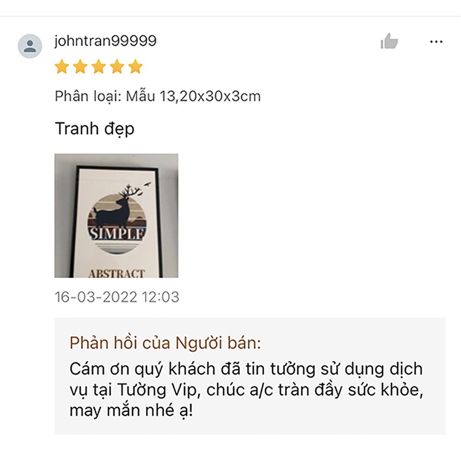 Tranh Laminate Tráng Gương - Tranh Treo Tường Phòng Khách, Phòng Ngủ Phong Cách Bắc Âu-Scandinavian Tranh Scandinavia mang tới sự nhẹ nhàng, sang trọng. Nhưng đơn giản trong trang trí và thiết kế. Sử dụng lối trang trí đơn giản với màu sắc nhã nhặn. Những bộ tranh phong cách Bắc Âu sẽ là sự lựa chọn hoàn hảo không chỉ cho phòng khách, phòng ngủ. Mà trang trí quán cà phê cũng cực kì ấn tượng. KÍCH THƯỚC SẢN PHẨM: có 3 size cho khách lựa chọn Kích thước: 3 tấm 20*30cm Kích thước: 3 tấm 30*40cm Kích thước: 3 tấm 40*60cm CHẤT LIỆU: Tranh Laminate Tráng Gương - Sản phẩm được in được in trên chất liệu giấy ảnh cao cấp cán mica (ép vào ván gỗ MDF chống ẩm - mối mọt), bề mặt tranh bóng mịn, sáng đẹp có thể lau chùi được, hiệu ứng hình ảnh sâu, sắc nét tạo nên sự sang trọng cho không gian, chống ẩm mốc, mối mọt và cũng như có độ bền lâu theo thời gian, viền đen được in trên phôi in tạo hiệu ứng như có khung. Ưu điểm tranh treo tường tại Tuongvip: ✔️ Bề mặt mica ceramic bóng loáng giúp tranh sáng sâu ảnh.Dễ dàng lau chùi và bảo vệ tranh tốt hơn. ✔️ Thời gian sử dụng 5 - 10 năm (tùy theo môi trường) ✔️ Tranh thiết kế ốp sát tường khi treo, tạo cảm giác ảnh nổi 3D trên nền tường. 🎁 Quà tặng: Tặng kèm đinh chuyên dụng, nhỏ gọn, dễ thi công, không phải khoan tường. ---------------------- #tranh #tranhtreotuong #tranhtreotường #tranhchobe #tranhtrangguong #tranhtránggương #tranhphòngkhách #tranhphongkhach #trangtrinhacua #tranhtrangtri #tranhđẹp #tranh3d #tranhtrem #tranhtrangguongtreotuong #tranhtrangguongphongkhach #tranhtrangtríphòng #dodecor #decor #tranhdantuong #