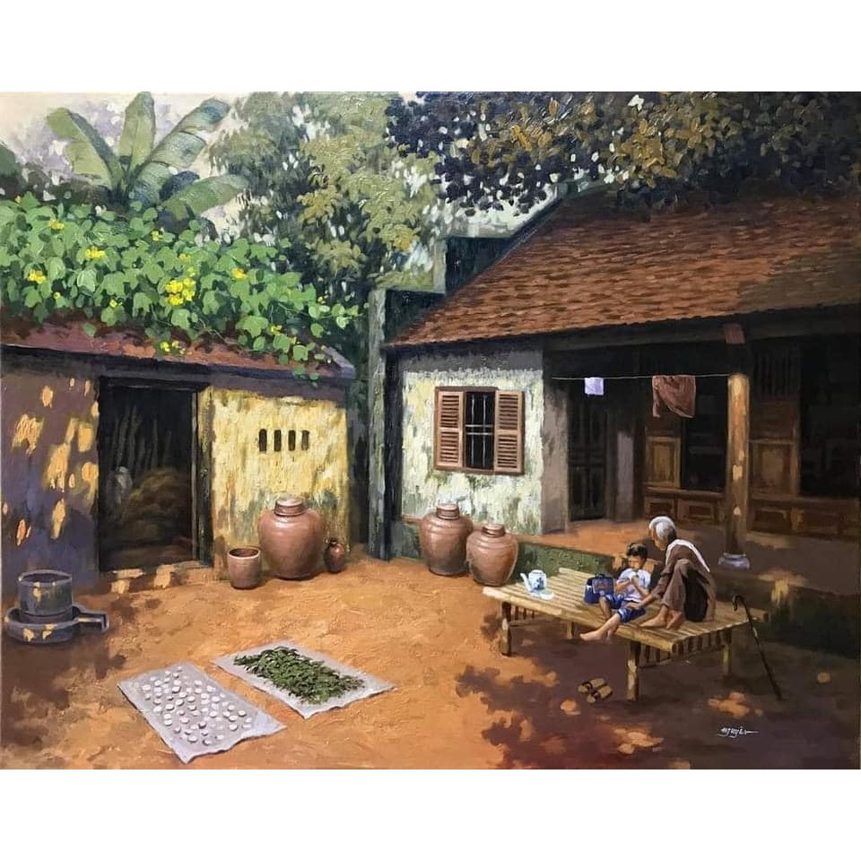 TRANH QUÊ XÓM NHỎ đồng quê làng quê Việt Nam