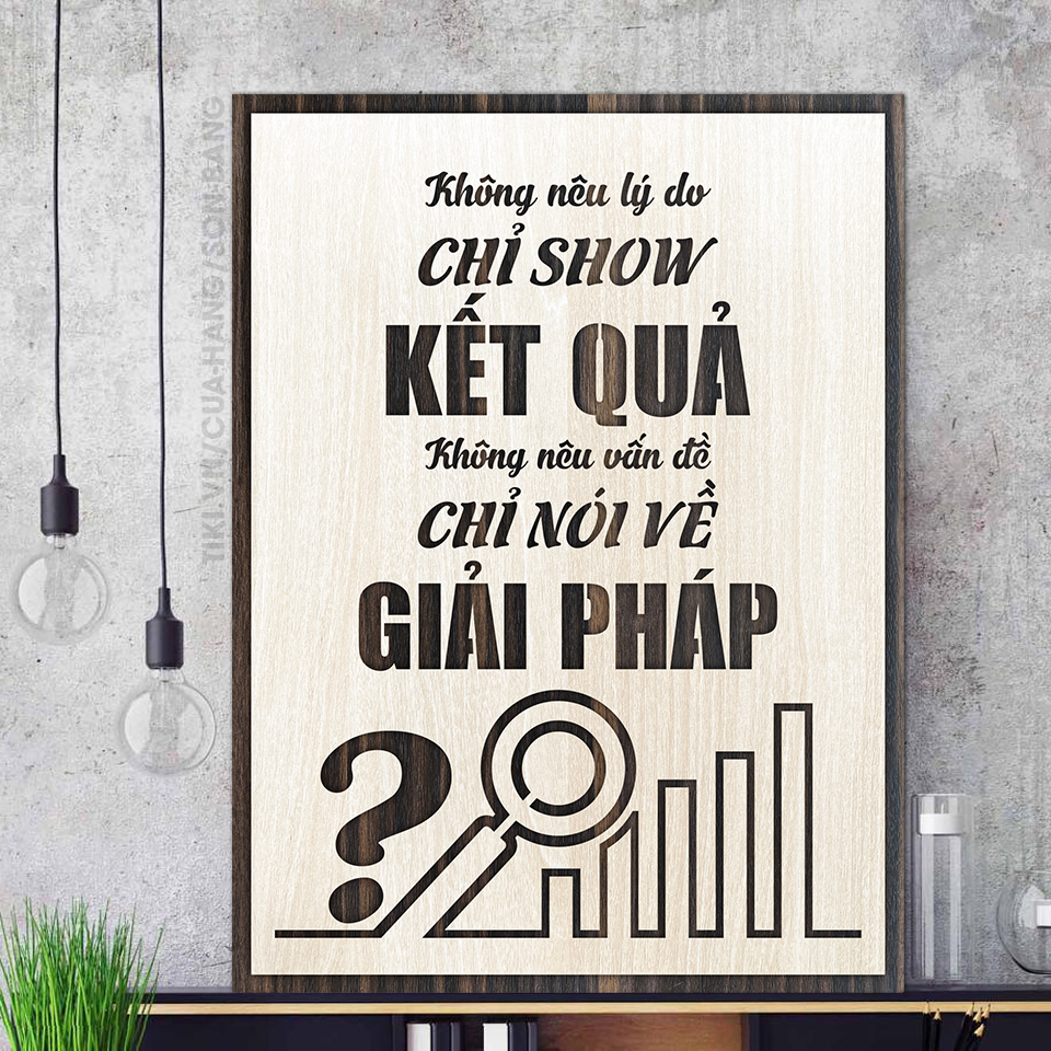 Tranh gỗ tạo động lực TBIG006: Không nêu lý do chỉ show kết quả, không nêu vấn đề chỉ nói về giải pháp️️ được làm từ Gỗ MDF phủ venner 2 lớp lõi xanh cao cấp cắt và khắc laser nội dung từ những câu nó...