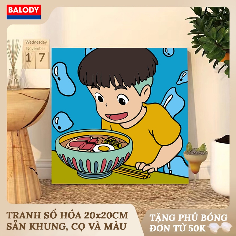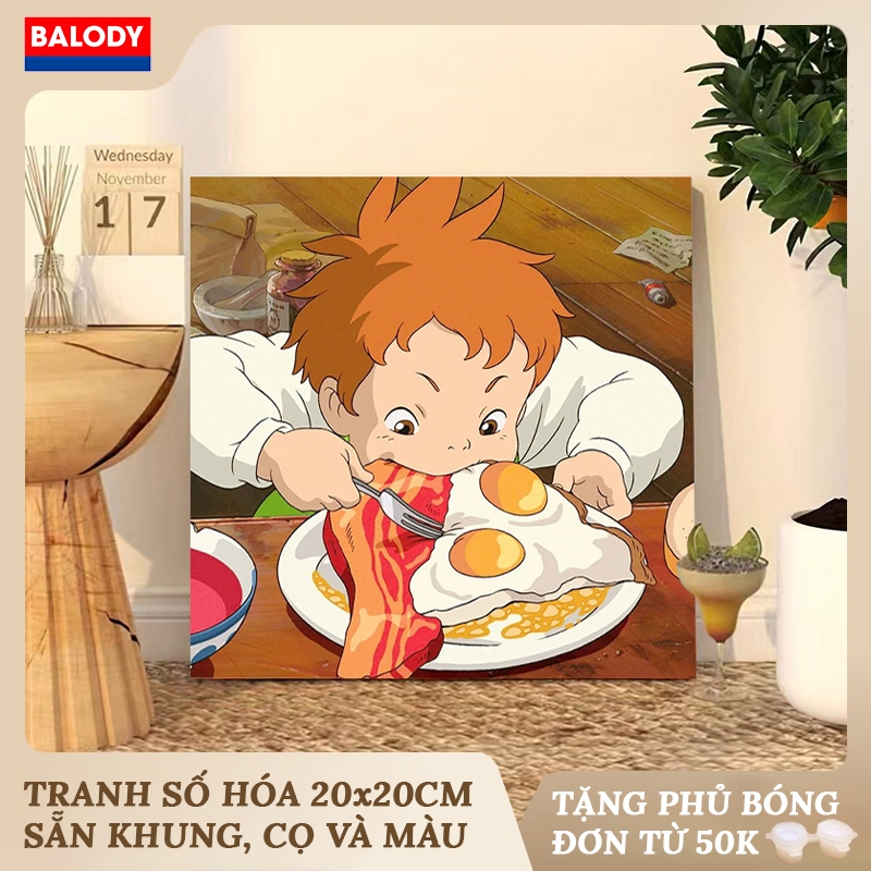 Tranh tô màu theo Số hóa Người cá Ponyo 20x20cm BALODY có khung,màu,cọ,móc treo tường