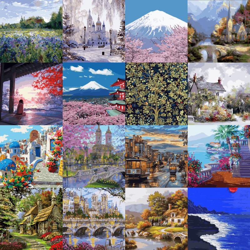 Tranh tô màu theo số Tranh sơn dầu số hoá hình phong cảnh 3 size 30*40cm kèm khung Tô màu tranh số hóa giúp bạn giảm stress và rèn luyện khả năng tập trung rất tốt cho cả người lớn và tr...