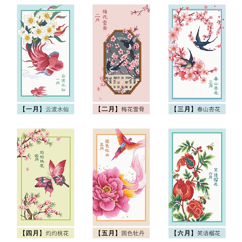 Tranh thêu chữ thập chỉ lụa 12 tháng trong năm D09154 >>LƯU Ý: có loại chỉ thường và chỉ lụa. Quý khách vui lòng chọn lựa chính xác. tranh thêu kín - Chỉ bóng cao cấp sờ vào là thích mê nhé. Không phải chỉ bông như thông thường đâu ạ. - Nền đạt chuẩn dễ dàng thêu. - Tặng bộ phụ kiện kéo, kim và móc chỉ đi kèm ạ. - Kim chỉ đầy đủ, Chỉ đợi các nàng dinh về thôi nhé