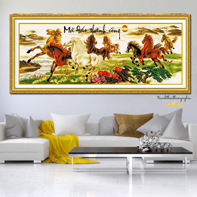 Tranh thêu chữ thập mã đáo thành công 1m50 x 54cm - 1m79 x 66cm - 2m22 x 83cm