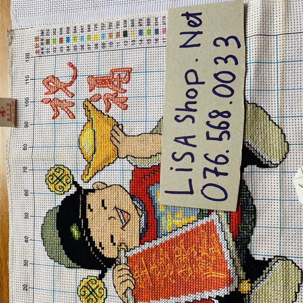 Tranh thêu chữ thập THẦN TÀI đã thêu