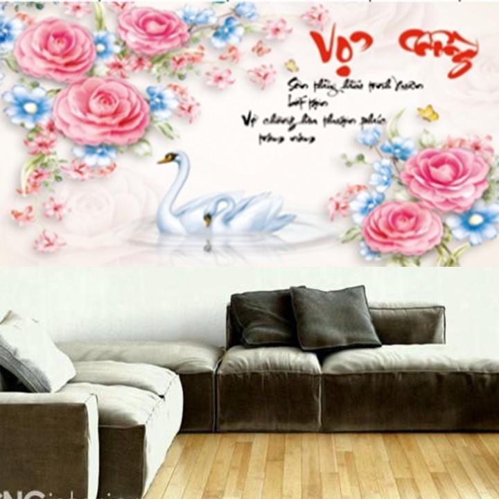 Tranh thêu vợ chồng thiên nga hoa hồng X8178 - kích thước: 58 * 43cm.
