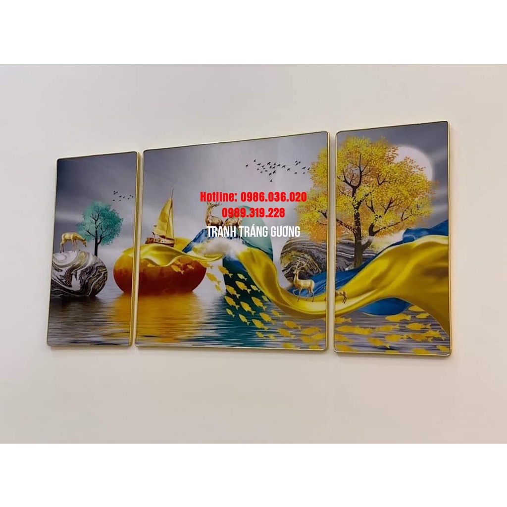 TRANH TRÁNG GƯƠNG,TRANH TREO TƯỜNG PHÒNG KHÁCH: Bộ tranh tráng gương treo tường gồm 3 bức,có 50 mẫu tranh,bên xưởng có nhận in tranh theo yêu cầu: 👉 Kích thước CẢ BỘ 3 tấm : Tổng cao 60cm _ rộng 120cm ...................................................................
