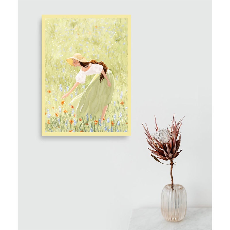 Tranh treo tường 20x30cm khung vàng nhạt - Tặng kèm đinh 3 chân