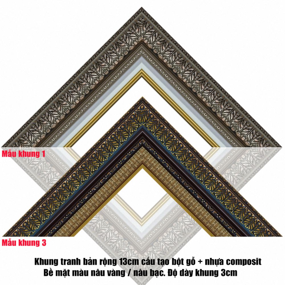 Tranh in bề mặt lụa kim sa ánh kim. Khung gỗ composit phong cách châu âu