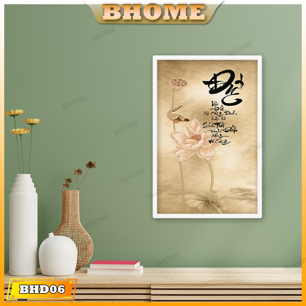 Tranh Treo Tường Thư Pháp - Hoa Sen Vàng Chữ Đức
