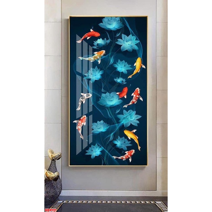 Tranh treo tường tráng gương cao cấp Cửu Ngư Quần Hội- Tranh phong thủy mừng tân gia, khai trương