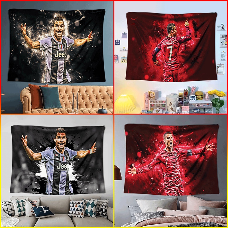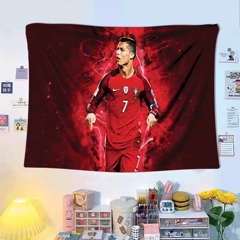 Tranh vải treo tường Decor Cristiano Ronaldo 2 cầu thủ bóng đá Thảm Decor phòng hot nhất