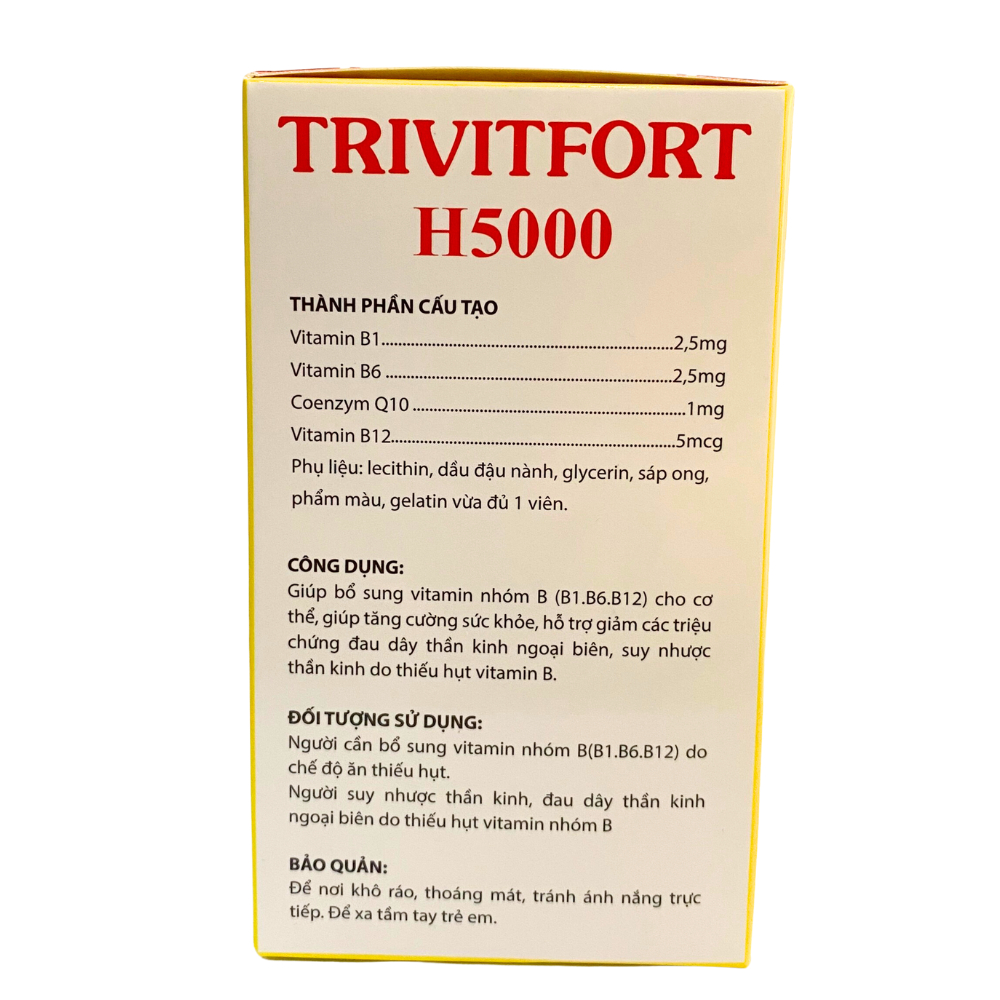 TRIVITFORT H5000 giúp bổ sung vitamin B1, B6, B12 cho cơ thể - Hộp 100 Viên