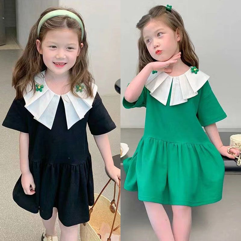 Váy Đầm Baby Doll Cổ Trắng Xinh Xắn Cho Bé Gái