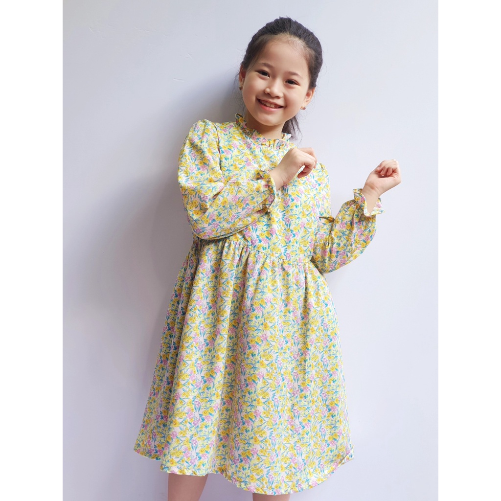 Váy dài Curlysue cổ bèo hoa nhí sắc màu Nga Fish V1C5H2