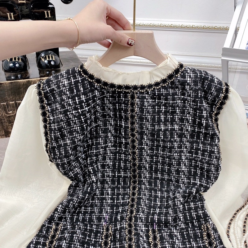 ☃️☃️ 𝗩𝗔́𝗬 𝗗𝗔̣ 𝗞𝗘̉ 𝗣𝗛𝗢̂́𝗜 𝗧𝗔𝗬 𝗩𝗢𝗔𝗡 🍀🍀 Sẵn kho váy dạ kẻ phối tay và cổ voan xinh xẻo, mix bốt diện Tết tiệc tùng cuối năm nổi bật nhé các cô gái. Hàng may 2 lớp lót cực đẹp, vải ánh kim tuyến xịn sò. Phom 55kg đổ lại. Giá #235k