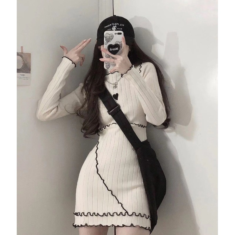 Váy len body cổ lọ len gân hàng Quảng Châu