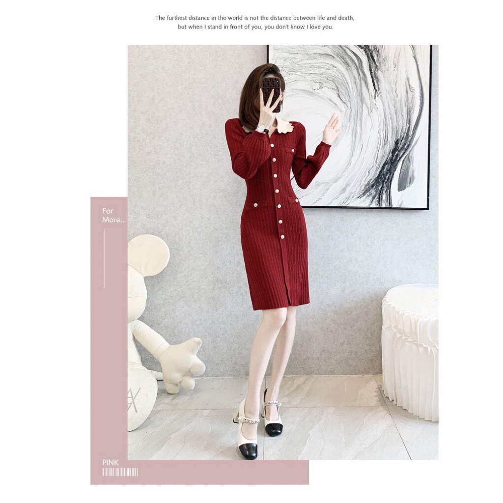 Váy len kiểu nữ xinh ôm body dáng dài Quảng Châu cao cấp, đầm len dệt kim đi chơi đi tiệc hai màu đen đỏ mẫu mới 2022