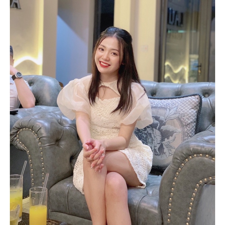 Váy Ren Tay Bồng LECOONG V193 Khoét Ngực Đi Tiệc Tiểu Thư