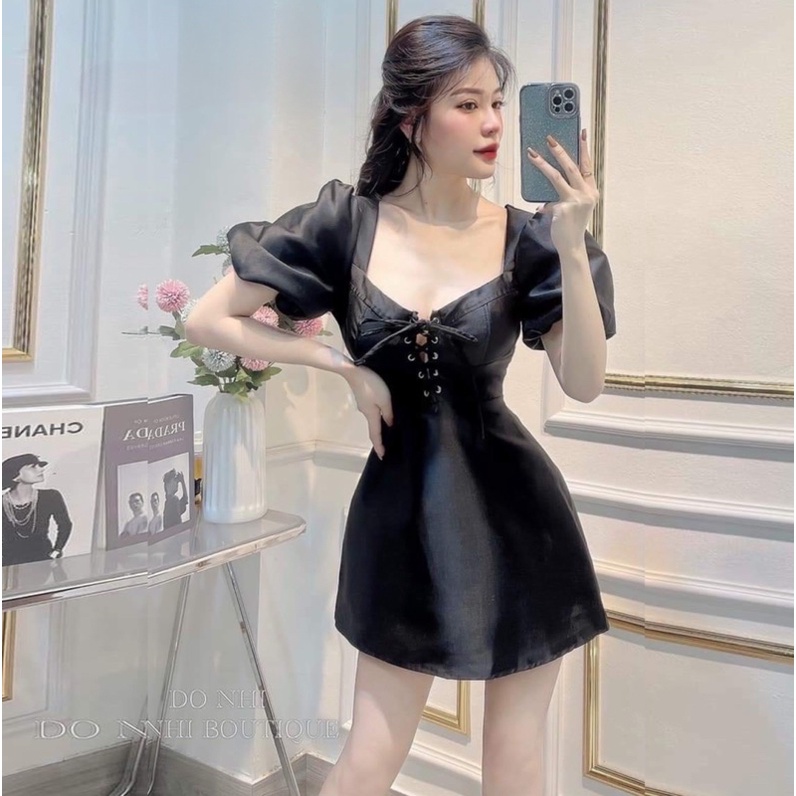 Váy tay bồng thiết kế dây đan ngực chất Tacta lụa cao cấp - PAHA SHOP