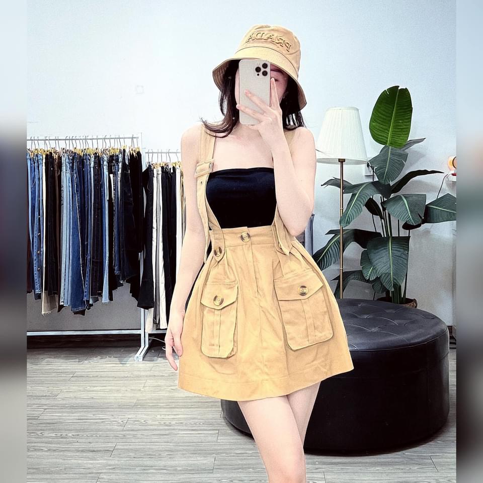 Váy yếm kaki túi hộp có quần trong