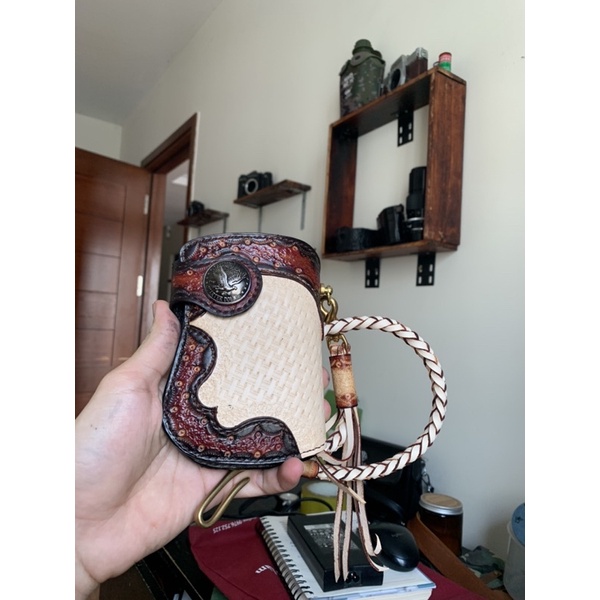 Ví da dáng biker được làm từ da bò Ý, nhuộm màu, khâu tay , thủ công từ a-z Sản phẩm có màu nâu cánh gián khu vực viền, giữa màu trắng mộc dùng lâu lên màu vàng bò tự nhiên Kích thước 9cm*14cm Sản phẩm bảo hành 1 năm sử dụng Cần thêm thông tin hỗ trợ vui lòng Ib face