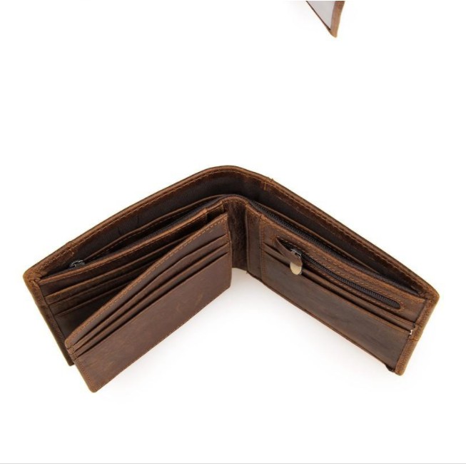 Bóp Ví Nam Da Bò Sáp Ngựa Điên Hàng Cao Cấp, Ví Nam Màu Nâu Vàng Bò Da Thật 100%