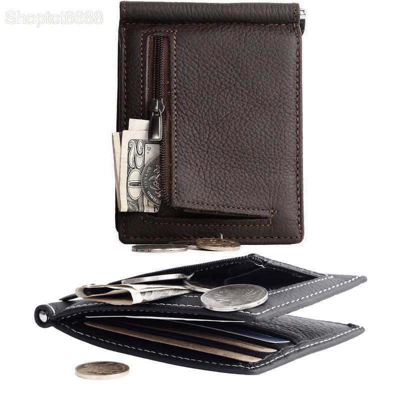 Ví kẹp tiền nam làm bằng da bò thật 100% có vị trí để thẻ card và tiền xu