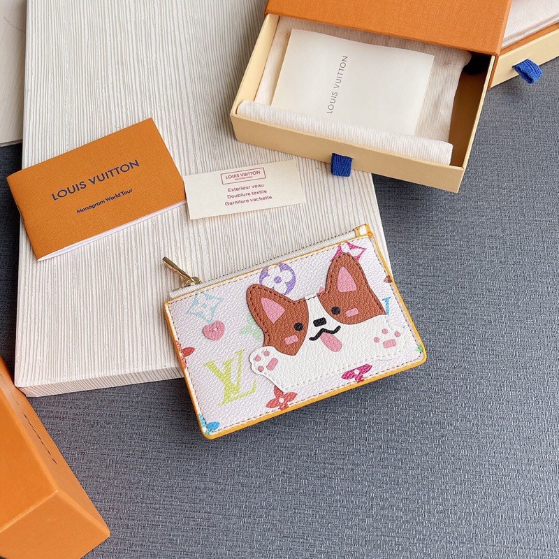 Ví mini cho nữ Louis Vuitton LV da thật cao cấp có 2 mẫu Corgi Dog và Birthday Bear