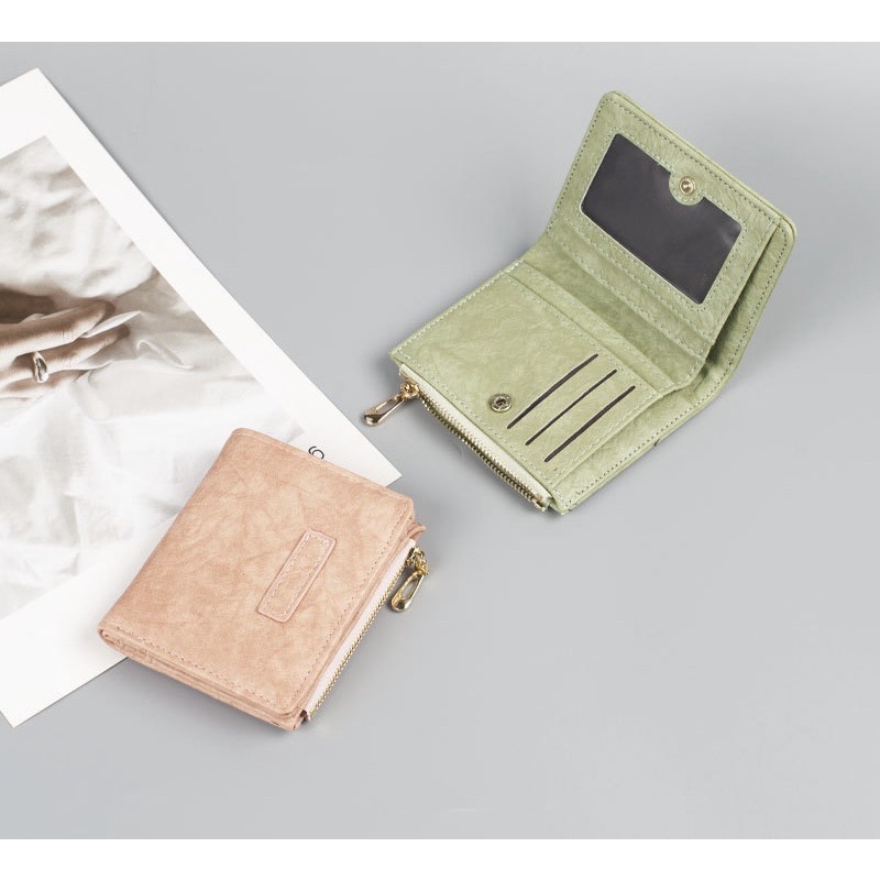 Ví nữ ngắn cầm tay da PU cao cấp phong cách retro hàn quốc sang trọng
