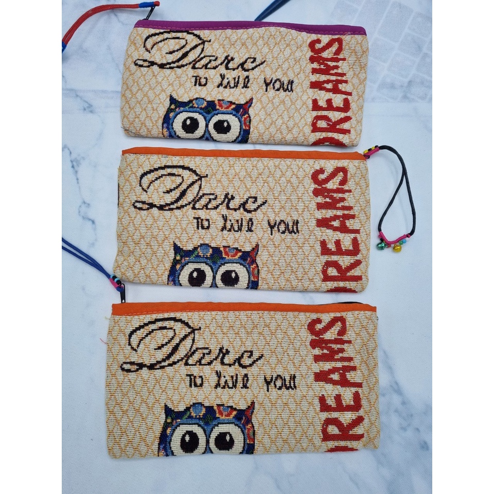 Ví nữ vải thêu hình cú đáng yêu, rất đẹp HÌNH ẢNH SẢN PHẨM DO SHOP TỰ CHỤP * Do ánh sáng đèn chụp chiếu mạnh nên màu sắc có chút khác biệt so với sản phẩm bên ngoài, có thể đậm/nhạt chút xíu. Quý khách có thể yên tâm đây là ảnh thật. Do chất liệu sản phẩm là vải thêu nên hình bên ngoài không sắc như hình. Tuy nhiên màu sắc của chất vải rất bền màu, nét, đẹp. Kích thước: ngang 21-22cm * dọc 12-13cm, tùy mẫu hình (do là hàng thủ công nên kích thước mỗi đợt sản xuất có chút xê dịch 0,5cm -> 1cm. Shop sẽ ghi thêm kích thước chiều ngang của ví ở mỗi chiếc để Quý khách dễ chọn lựa ạ ! Mong Quý khách thông cảm ạ !) Ví có 01 ngăn, khóa kéo gắn dây lục lạc xinh xắn Chất vải bền màu. Màu sắc sắc nét, rất đẹp 2 mặt ví có thể khác hình nhau, shop chỉ chụp 1 mặt. Ví nhiều họa tiết mang ý nghĩa phong thủy, ví dụ như hình cú biểu thị cho sự thông thái, hình mèo hoạt bát đáng yêu, hình voi biểu thị cho sự khỏe mạnh, hình chuột mickey biểu thị cho sự nhanh nhạy... Quý khách có thể thoải mái lựa theo sở thích ạ ! Có thể dùng đi chơi, bỏ túi (size to), đi du lịch, tặng quà... Đơn vị tính: 01 chiếc Hàng Việt Nam sản xuất Túi mũ Trọng Tín 461 hoặc 663 Trương Định - Hà Nội hân hạnh được phục vụ Quý khách ! Hotline/Zalo 0978 987 899 hoặc 0903 633 779 * Luôn có nhiều ưu đãi cho Khách hàng mới và Khách hàng thân thiết * Cam kết hàng giao đúng mẫu đăng trên gian hàng * Sản phẩm có sẵn, thời gian gửi hàng nhanh chóng tới đơn vị vận chuyển * Uy tín - chất lượng luôn được đặt lên hàng đầu.