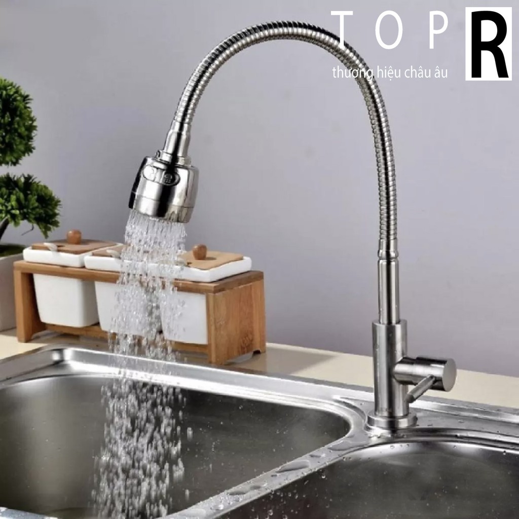 Vòi rửa bát đơn lạnh Inox 304 TOP R - Thương hiệu châu âu Chất liệu inox 304 bềnchắc không bị ô xi hóa Thiết kế sang trọnggọn gàng tiện lợi Thân vòi có thể xoay 360 độ rất tiện lợi; dễ dàng xoay từ bồn rửabên này sang bên kia với đĩa xoay siêu bền Đầu vòi có 2 chế