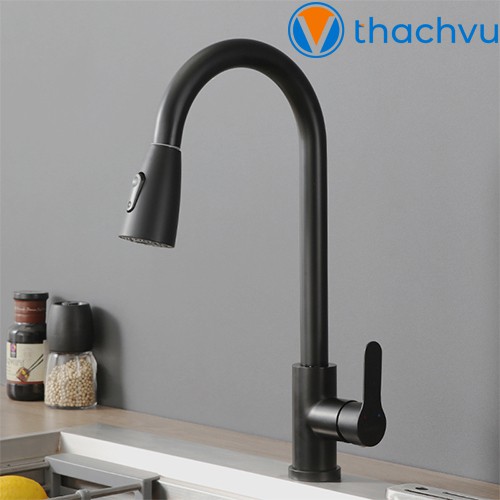 Vòi rửa chén bát nóng lạnh dây rút, 2 chế độ nước tiện dụng, vòi inox 304 đa năng dây rút siêu bền.
