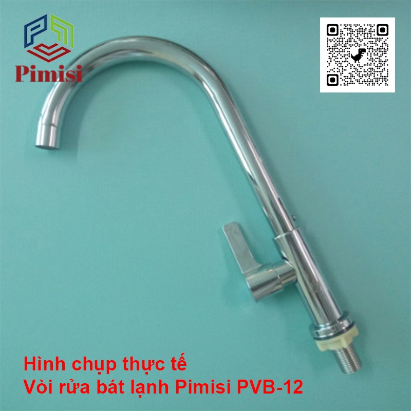 𝑪𝒉𝒂̀𝒐 𝑩𝒂̣𝒏, có phải Bạn đang muốn tìm hiểu vòi rửa chén lạnh 1 đường nước Pimisi PVB-12 cao cấp kiểu tròn cổ ngỗng, sáng bóng cổ xoay bi, hàng chính hãng Pimisi được làm từ chất liệu chính inox 304, mạ xi Crom - Niken sáng bóng. Phù hợp nhu cầu cơ bản cho không gian b