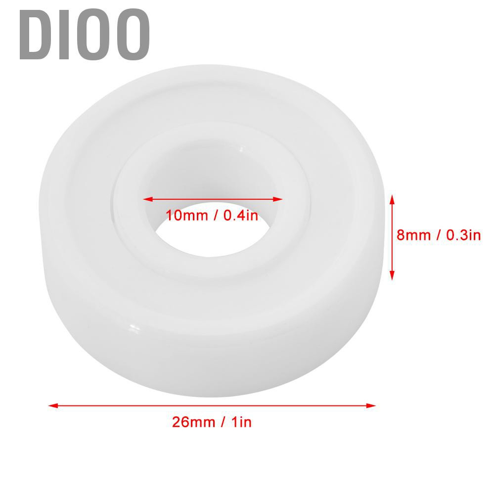 --------------------------------------------- *Welcome Dioo Store* ---------------------------------------------- ❀We insist on giving you the best products at the lowest price❀ ✔Ready to sent ✔High quality ✔Best price ☛Free Gifts:Follow Shop ☞PS: If you want a free gift, please send me the screenshot that you follow my shop and leave a message on your order. --------------------------------------------------- * Product * --------------------------------------------------- Features: The ceramic rolling bearing is suitable to work in harsh condition of corrosive fluids, because ceramic is almost not afraid of corrosion. Due to the lower density of ceramic rolling balls and much lighter weight than steel, the centrifugal effect to external race can be reduced by 40% when rotating, thus greatly extend the service life. The ceramic is less affected by thermal expansion than steel, therefore, when bearing clearance is certain, it can work in a environment where temperature changes more severely. The elastic modulus of ceramic is higher than steel, so ceramic is not easy to deform under stress, which can improve work speed, and achieve a higher precision. Widely used for medical apparatus and instruments, cryogenic engineering, optical instrument, high-speed machines, high-speed electric machinery, printing machinery, food processing machinery, aviation, spaceflight, navigation, petroleum, chemical industry, automobile, electronics, metallurgy, electric power, textile, pumps. Specification: Model: 6000-2RS Inside Diameter: 10mm / 0.4in Outer Diameter: 26mm / 1in Thickness: 8mm / 0.3in Color: White Type: 6000-2RS full ceramic bearing Material: Zirconia ceramics Rolling Element Row: Single row Race Type: Deep groove race Weight: 17g / 0.6oz (approx.) Package List: 1 * Bearing