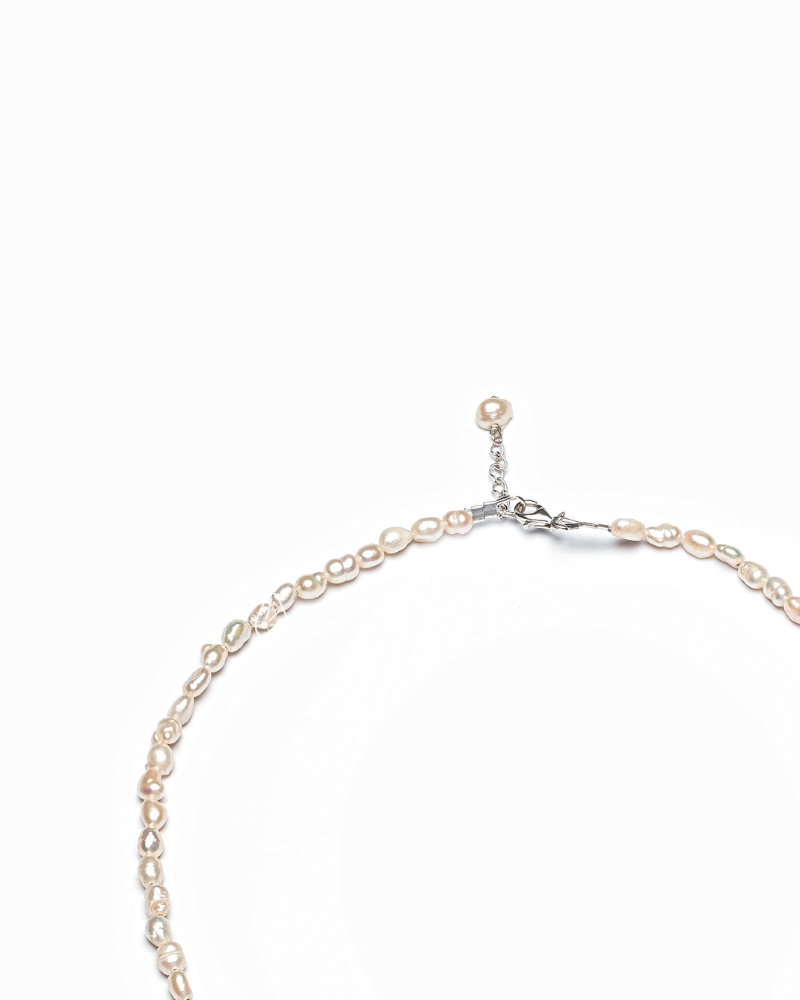 Vòng cổ ngọc trai dáng dị cỡ 3 li phối viên Biwa, khóa bạc....