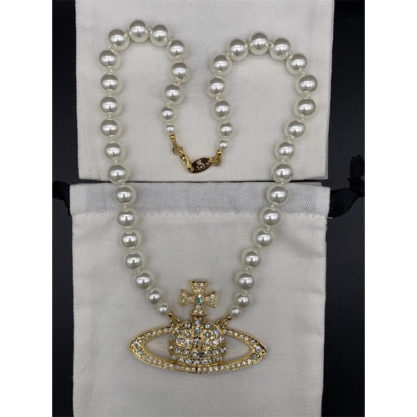 Vòng cổ Vivienne Westwood ngọc trai nhân tạo mặt lớn đính đá cá tính