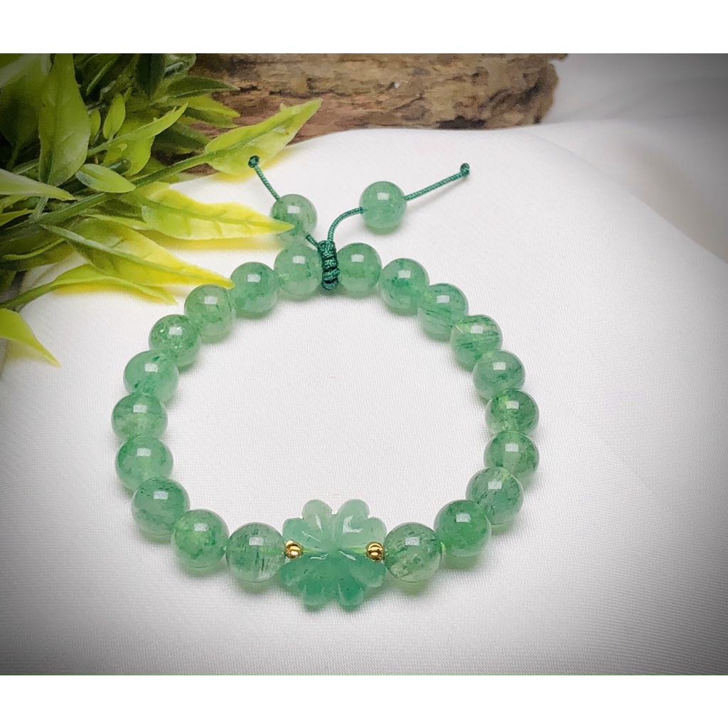 Vòng tay đá T.A dâu tay xanh mix charm cỏ bốn lá