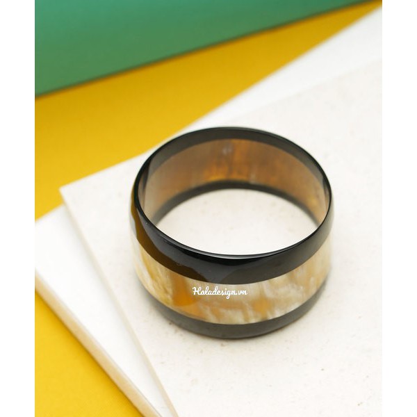 Vòng tay boho bản lớn, Vòng sừng trâu cao cấp hai màu đen trắng
