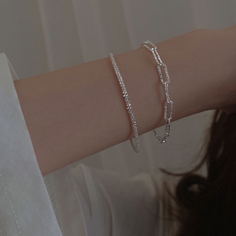 Vòng tay lắc tay nữ 2 dây bạc sáng đẹp, kiểu dáng basic dễ phối đồ
